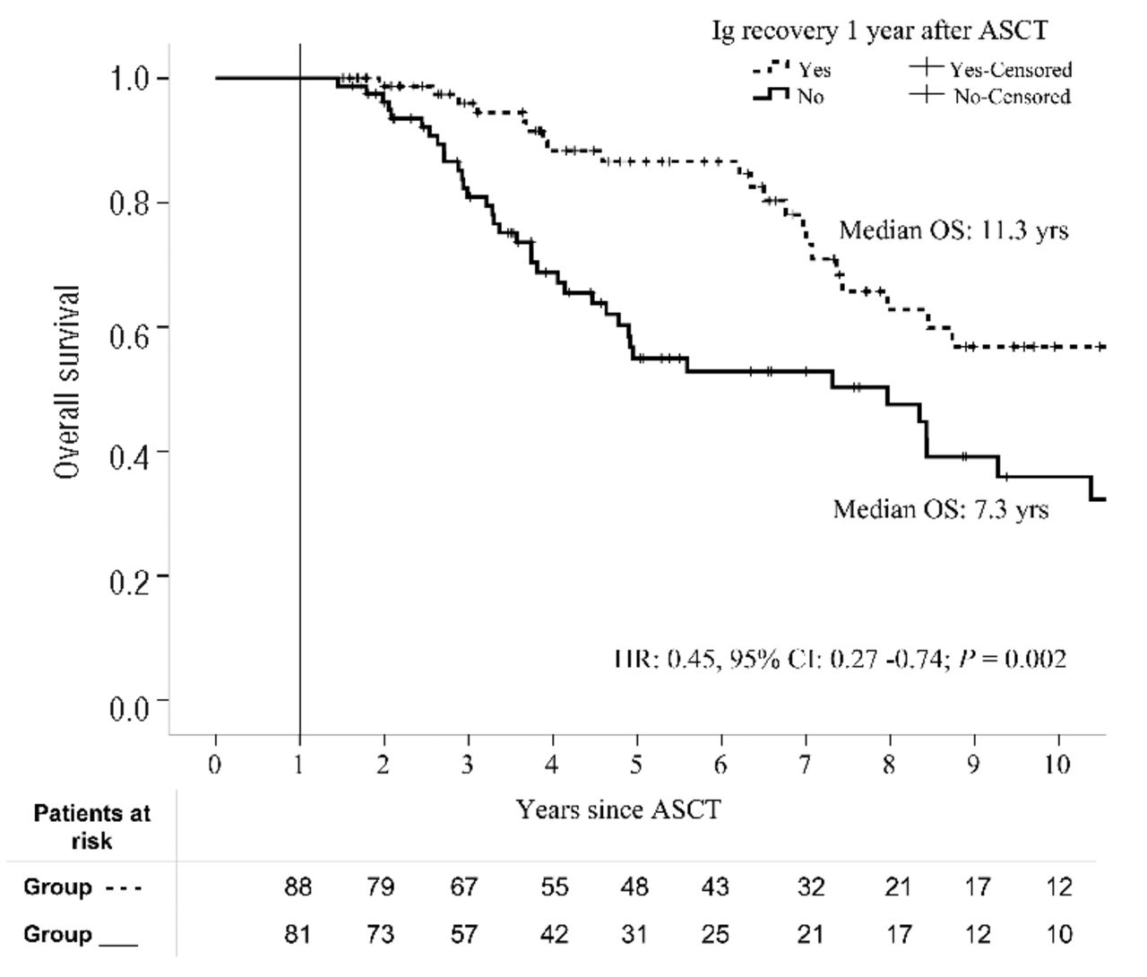 Analysis of long term survival in multiple myeloma after first line autologous stem cell transplantation.